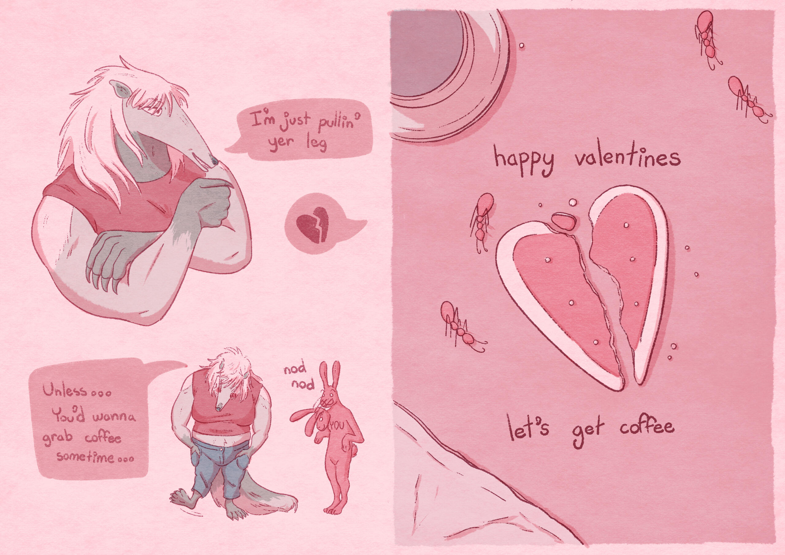 I am a digital illustrator, comic artist, and amateur printer from Cincinnati, Ohio. Pulling from my love of indie comics and unique printing processes, I seek to represent the beauty in the mundane, cherishing what’s crucial in the smaller moments of our lives. Born and raised in the Tri-state for all my life, I am influenced by being a Midwesterner, queer, and a complicated animal. Blending stylization, anthropomorphism, physical craft, collage, and screen printing, much of my recent work creates worlds that feel real in all the ways that really count.
